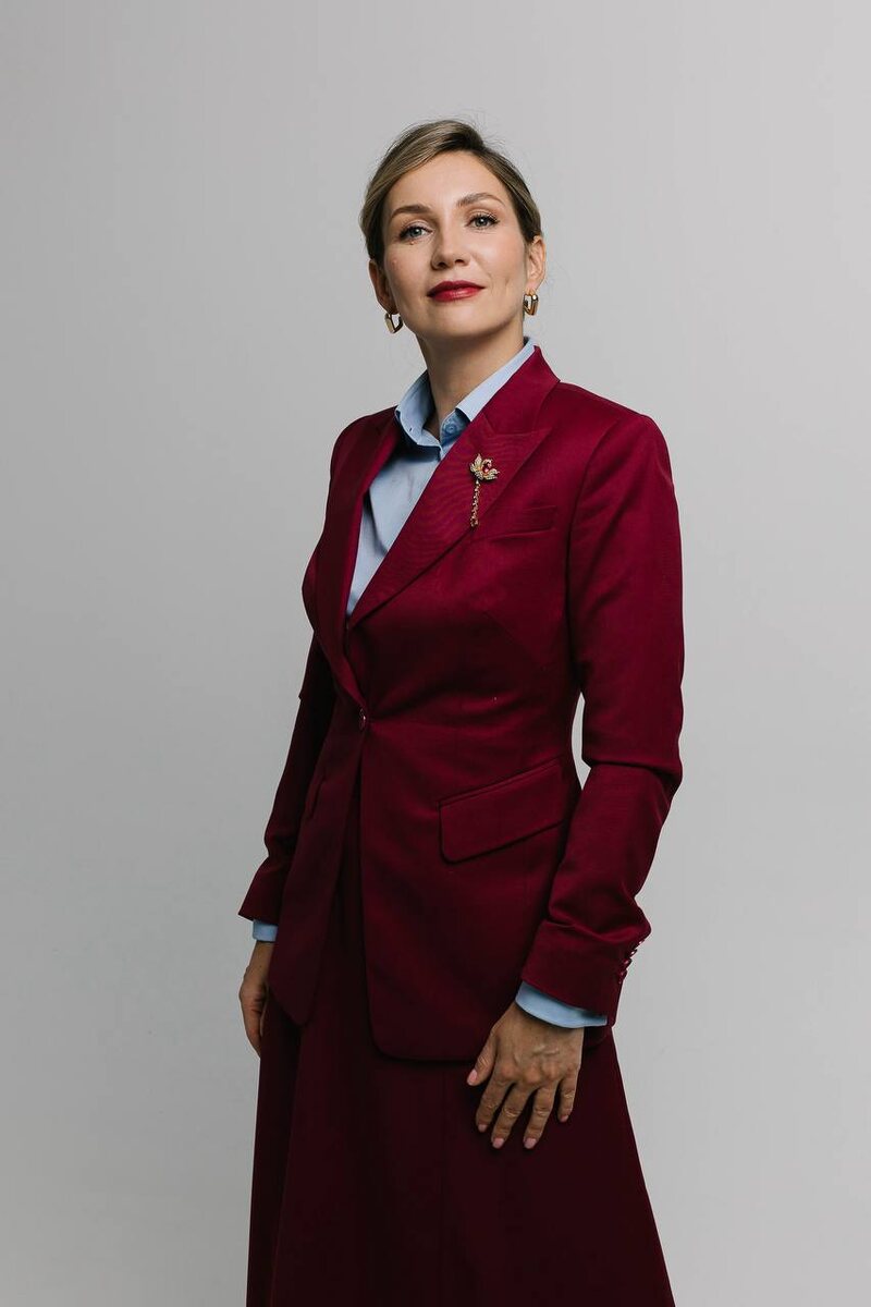 1. Костюм: Темно-серый или темно-синий, свободного кроя, с юбкой из тонкой шерсти – элегантность и профессионализм.