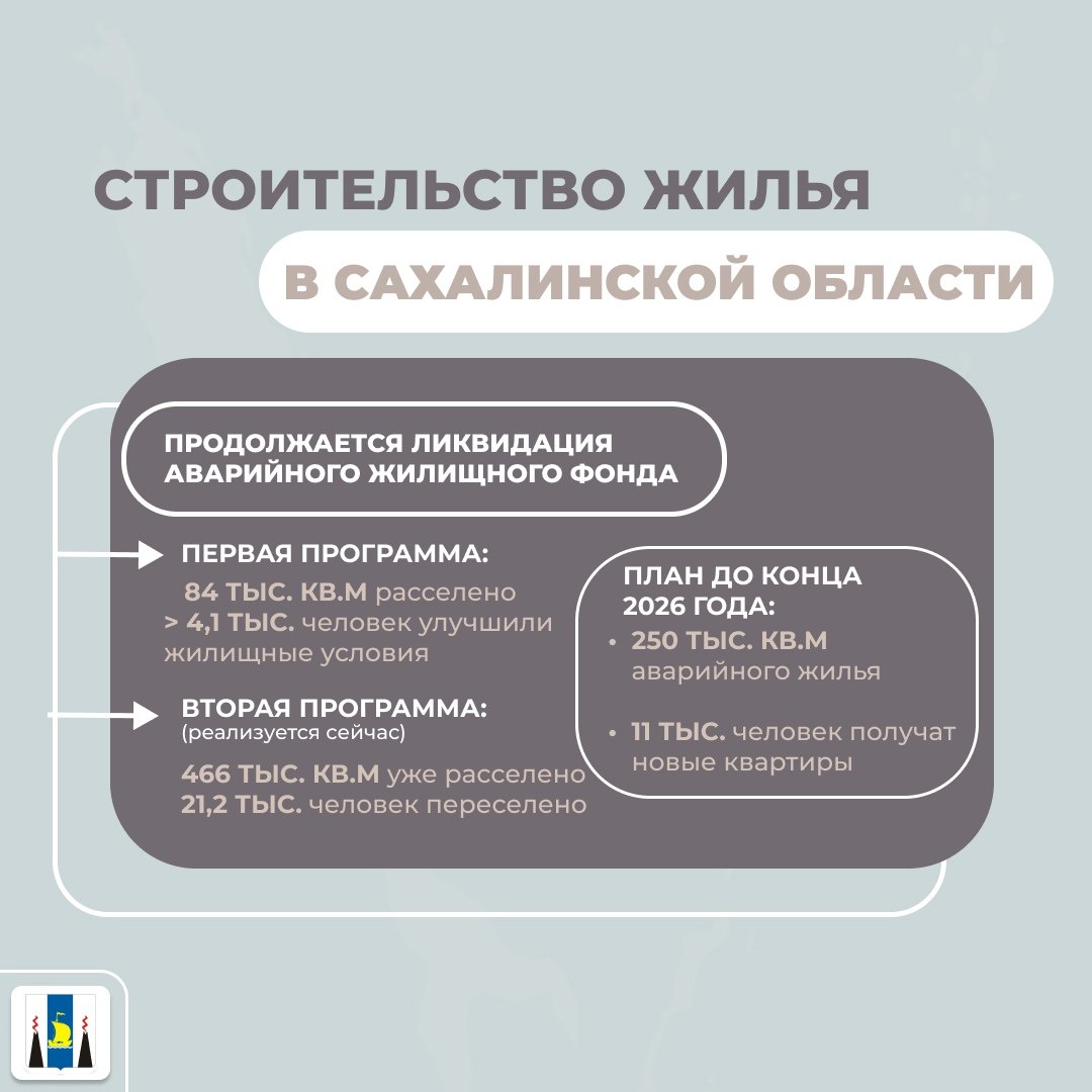 🗾 В Сахалинской области строятся крупные жилые микрорайоны со всей необходимой социальной инфраструктурой ✏️ За последние четыре года в регионе удалось сократить площадь аварийного жилья в три раза. В отношении общего объема строительства жилья, в области на протяжении трех лет вводится больше 1 кв. м на человека, что позволяет занимать 9-е место в стране по этому показателю. 💬 Об этом губернатор Валерий Лимаренко рассказал в отчете о деятельности регионального Правительства за 2024 год. 📌 Подробнее в наших карточках.