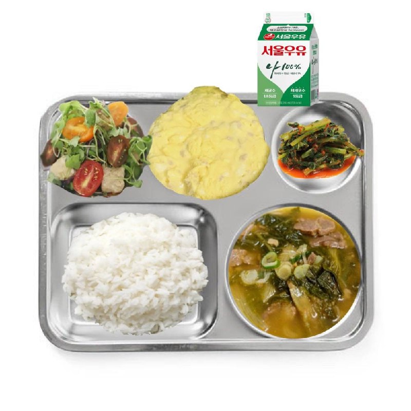 🍊 Завтрак BTS в армии. Намджун, Тэхён: Рис Суп из говядины с зеленью Омлет с ветчиной Салат с кубиками сыра и копченой куриной грудкой Кимчи из молодого редиса Молоко Чимин, Чонгук: Рис Суп из говядины и водорослей Тушеные ростки фасоли Жареная капуста со свининой в устричном соусе Кимчи из редиса Молоко * У Юнги альтернативная служба, поэтому информации о его питании нет. cr.taehyung_sikpan, jimin_foodtray #BTS 🐈🌱[https://dzen.ru/id/5f3ce54ccaeef80d2efd6e05]🌱🐈