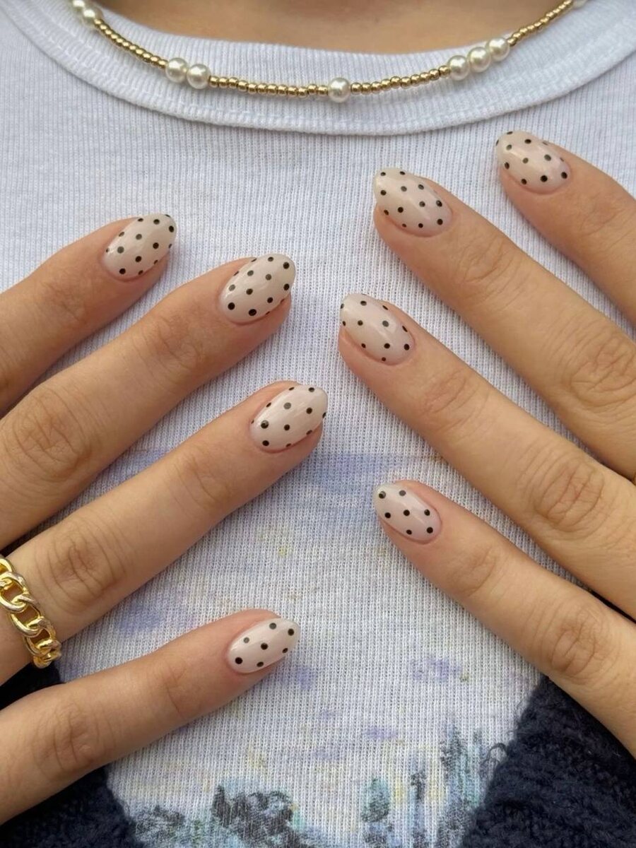 В тренде маникюр с точками. Смело экспериментируйте с оттенками фона и самих горошин. Главное, чтобы дизайн был мелким.
