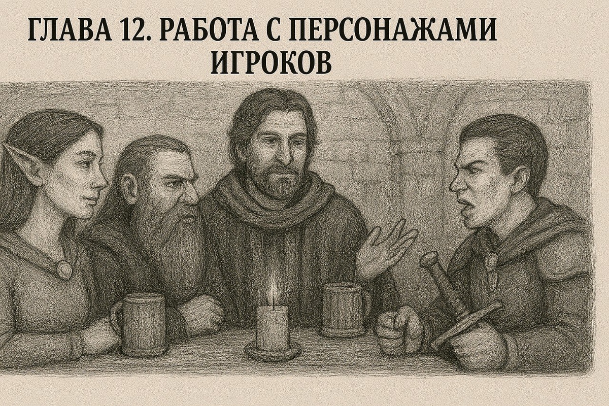 Модуль 12: Работа с персонажами игроков https://author.today/reader/444402/4173065 12.1. Вписываем их бэкграунды в общий мир: когда прошлое становится предысторией мира. 12.2. Личные квесты: дайте каждому повод сиять. 12.3. Управление амбициями: не даём игрокам перетянуть одеяло, сохраняя баланс. 12.4. Как реагировать на неожиданные «фокусы» игроков: если кто-то внезапно решает сбежать в другой конец света. Жорж Феанор Тихо. Подземелья и Вопросы: Как придумывать Миры?