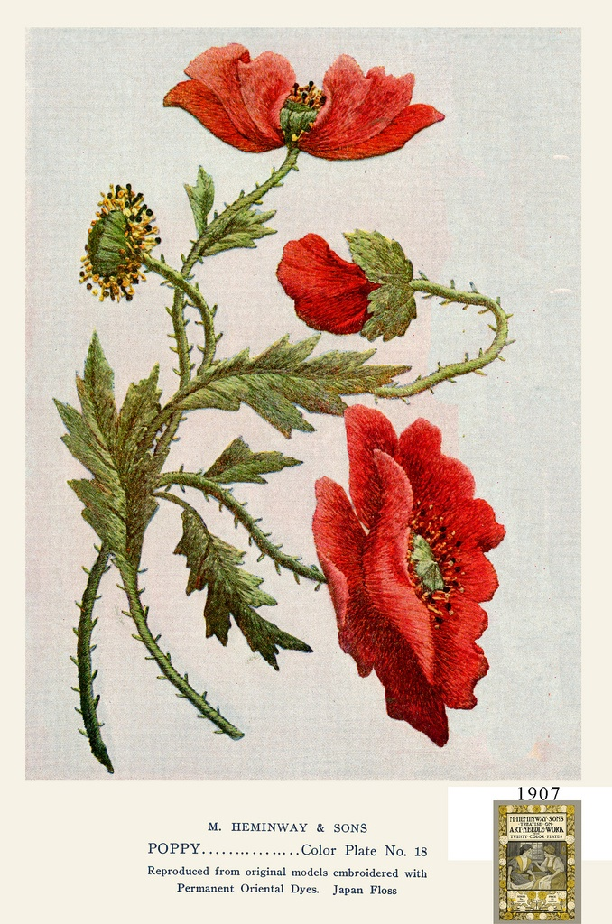 МАКИ от Heminway & sons, сейчас почти нет информации об этой когда-то знаменитой компании, образованной в середине 19 в, производившей нити из натурального шелка для вышивки гладью.