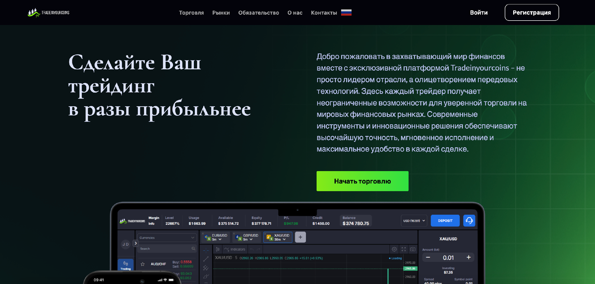 С каждым годом появляется всё больше онлайн-платформ для торговли криптовалютами и другими финансовыми активами. Одной из таких платформ является Live.Tradeinyourcoins.com, работающая под брендом Tradeinyourcoins.com. Несмотря на привлекательные обещания и профессиональный внешний вид, платформа вызывает множество вопросов. В этой статье мы разберемся, что на самом деле скрывается за этим проектом, и какие риски могут поджидать пользователей.