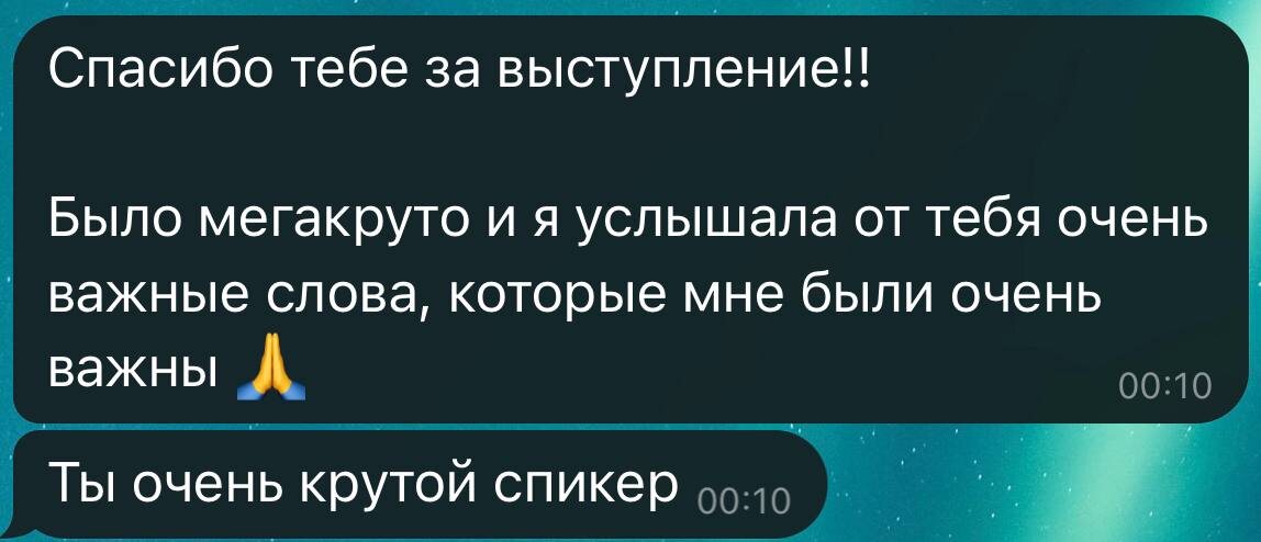 Те, кто был на моих выступлениях и мероприятиях, говорят, что услышали для себя важные слова.