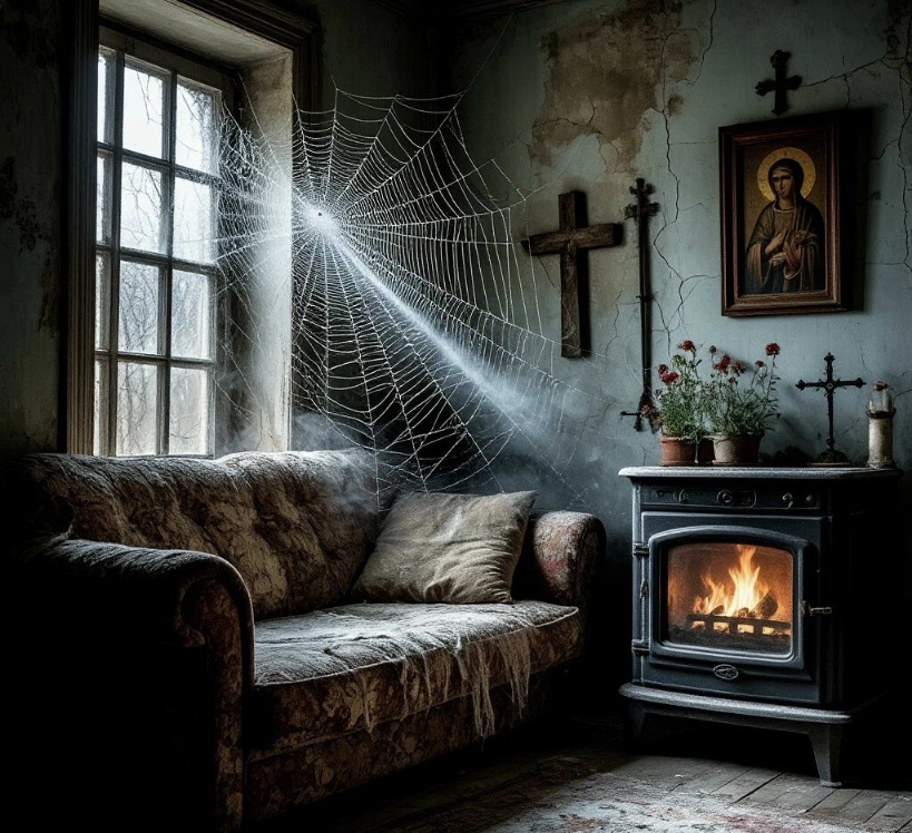 За печкой что-то шуршало сухими листьями, хотя дом стоял пустой. А наутро мы нашли все рушники в горнице перевёрнутыми — вышитые крестиком обереги смотрели вниз, как предписывают на поминальных полотенцах.