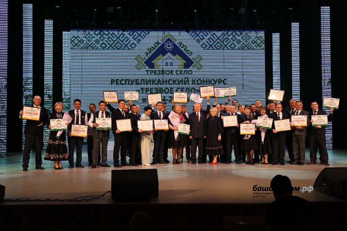 Сегодня в Уфе состоялась церемония награждения победителей конкурса «Трезвое село». В этом году высокие награды получили 12 самых трезвых населенных пунктов республики. Мероприятие прошло в концертном зале «Башкортостан». В номинации «Большие населенные пункты» победила деревня Таваканово из Кугарчинского района, II место заняла Казмашево из Абзелиловского района, III место досталось Иргизлы из Бурзянского района. В категории «Средние населенные пункты» первое место завоевала Амирово из Аскинского района, следом Янышево из Благоварского района, а III место заняло Аючево из Стерлитамакского района. В «Малых населенных пунктах» лучшей стала Кинзябулатово из Зианчуринского района, второе место у Алтаево из Бураевского района, а третье у Байракатубы из Туймазинского района. Награды вручили депутат Госдумы Эльвира Аиткулова и председатель Госсобрания Константин Толкачев. Как отметил Толкачев, конкурс «Трезвое село» содействует улучшению уровня жизни, демографии и здоровья населения. Каждый