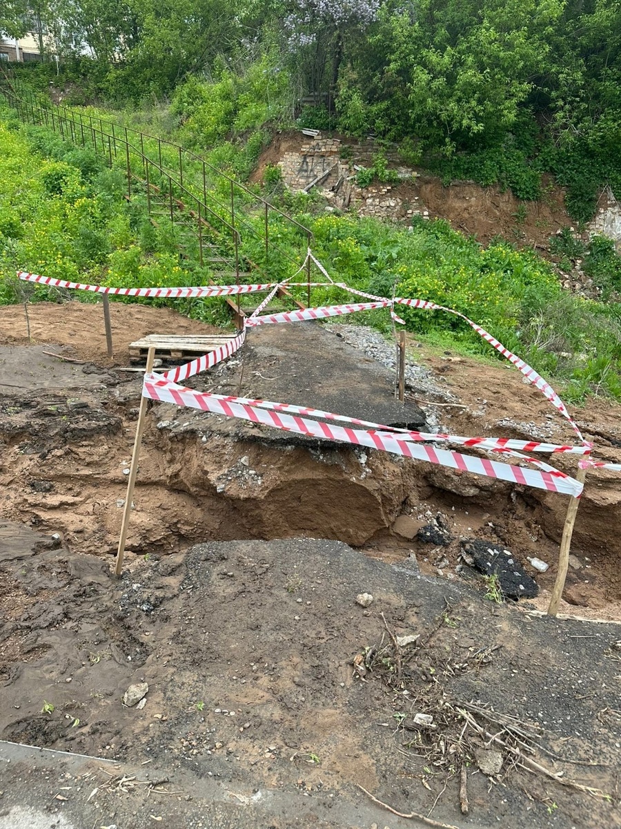 Из-за сильных дождей произошло частичное смывание грунта на улице Генерала Рыленко. На участке соединения лестницы с пешеходным тротуаром образовалась промоина. Как сообщил в своих соцсетях глава Кировского района Уфы Илвир Нурдавлятов, на месте происшествия установили сигнальные ленты, предупреждающие об опасности. «Также в управлении гражданской защиты Уфы прошло заседание комиссии по чрезвычайным ситуациям, на котором обсудили необходимые меры реагирования. Сегодня управление по строительству, ремонту дорог и искусственных сооружений Уфы выведет подрядную организацию для устранения последствий размыва грунта», — сообщил глава района. Он попросил местных жителей, особенно родителей с детьми, избегать данного участка до завершения работ. В администрации ситуацию держат на контроле. Ранее «Башинформу» в УСРДИС администрации Уфы прокомментировали, что генеральный подрядчик ЗАО «Уралмостострой» обещает в рамках исполнения гарантийных обязательств приступить к устранению инцидента с размы