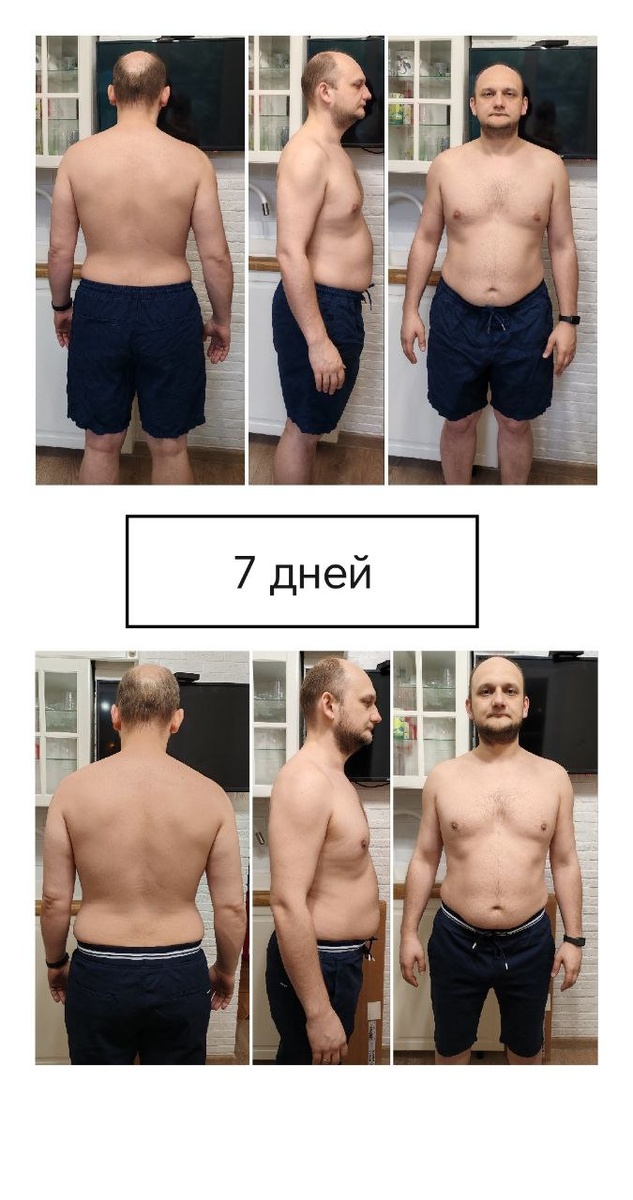 📊 Итоги недели! 🤔 Прошла очередная неделя, когда я пытаюсь привести свое тело в нормальную форму... Оценим результат... 🗓 15.05.25 💪 День похудения: 127 ⚖️ Вес сейчас: 86,8 кг ⚖️ Вес 7 дней назад: 86,15 кг ⚖️ Вес до начала похудения: 111,2 кг 🧈 Жир сейчас: 23,44 кг 🧈 Жир 7 дней назад: 23 кг 🧈 Жир на 10 день похудения: 35.91 кг ⚖️📉 Потеряно веса с начала похудения: 24,4 кг или 21,94 % ⚖️📈 Потеряно Набрано веса за последнюю неделю: 0,65 кг или 0,75 % 🧈📉 Потеряно жира с начала похудения (с 10ого дня, раньше не мерил): 12,47 кг или 34,72 % 🧈📈 Потеряно Набрано жира за последнюю неделю: 0,44 кг или 1,91 % 🤔 Выводы за неделю: (блок ниже разворачивается при нажатии) 1. Разница на фотках точно есть... 2. За эту неделю Вроде как плечи стали шире, это скорее всего из-за того что осанка становится более нормальная... 3. Неделя прошла относительно... По тренировкам все было почти прекрасно, еще бы пару раз на дорожку сходить и в бас поплавать... а вот по питанию все было н