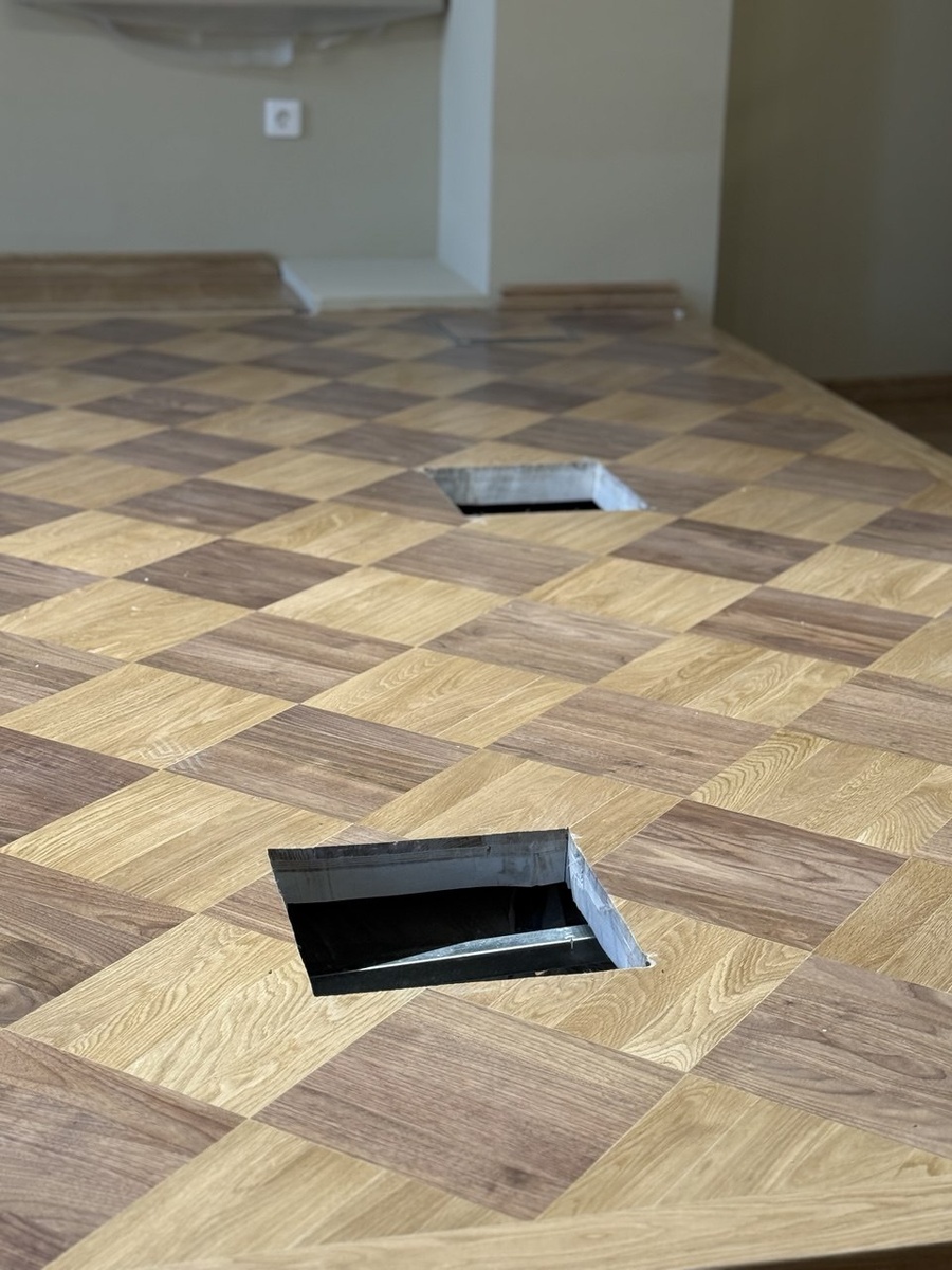 В одном из офисных проектов лючки были размещены на основе пожеланий заказчика — в местах, где планировалась установка рабочих столов. При изменении планировки часть плит с лючками просто была переставлена в новые зоны. Это позволило быстро адаптировать пространство под новые задачи без дополнительных затрат.
