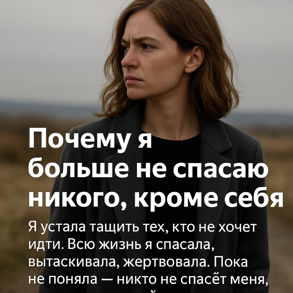 Это сложно. Это больно. Но это честно. И это — путь взросления. Путь из роли жертвы — в роль женщины, знающей себе цену. Я больше не тащу. Я рядом, если человек сам готов идти. И если у меня есть на это ресурс.