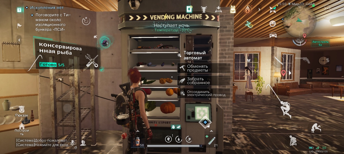 Для того чтобы продвать свои товары необходимо построить торговый автомат. Открывается через меметику. Все просто, открываете автомат, слева то что хотите продать, справа выбираете цену и количество. Для того чтобы купить предметы. Нужно найти в доме у других игроков такой же автомат, он светится желтым на карте в углу справа. Заходите в дом, открываете автомат и выбираете то что продаёт данный игрок.