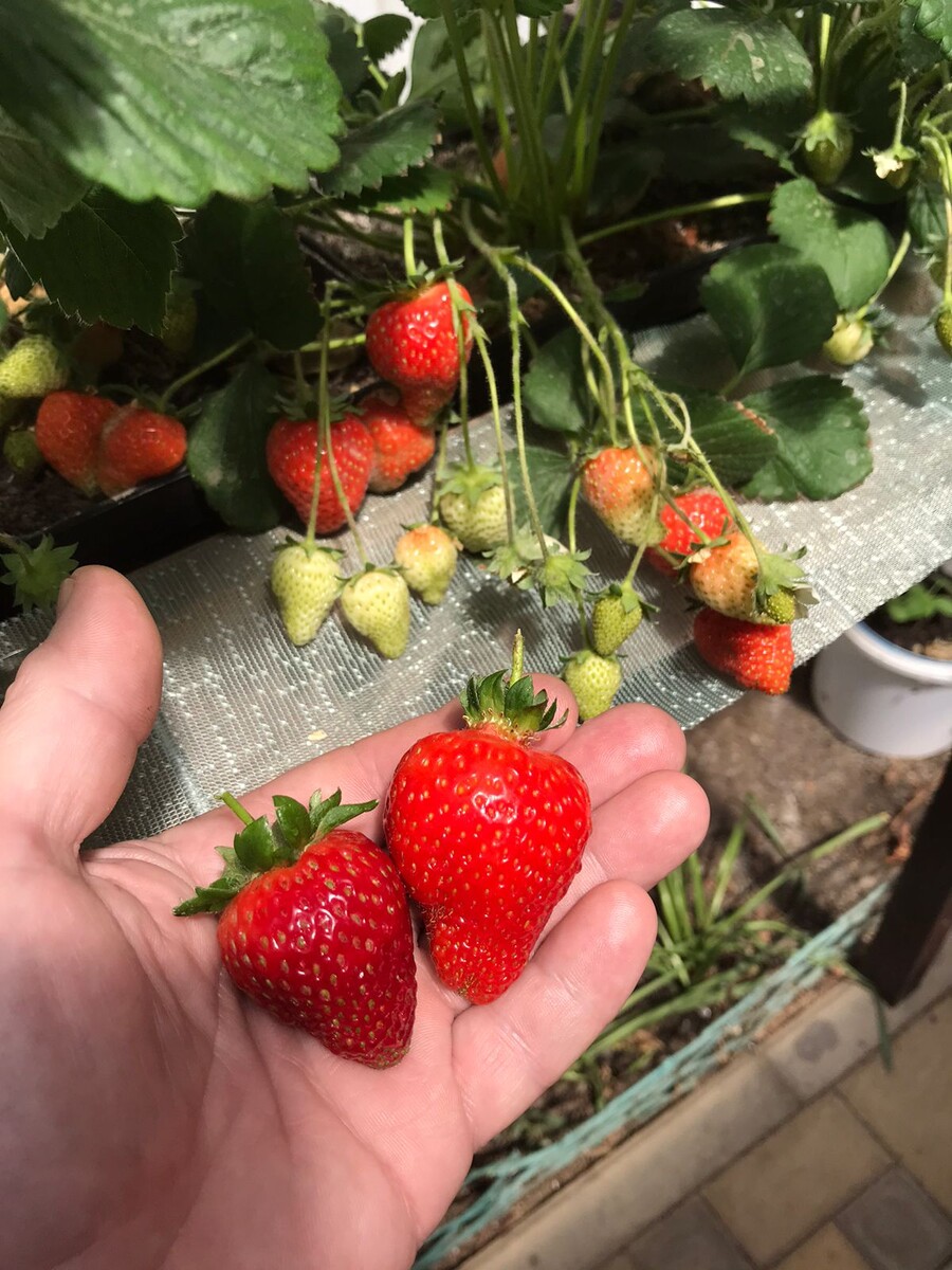 Выращивание клубники в горшках, 14 мая собираю первый урожай.