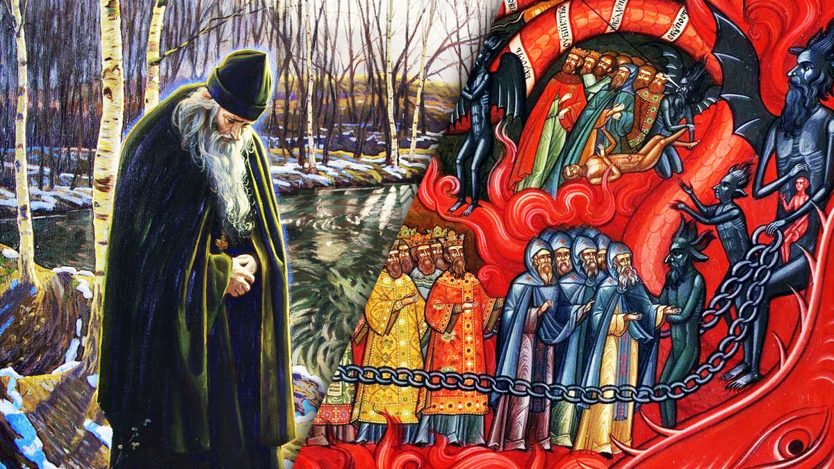 К умирающему грешнику нераскаявшемуся приходят демоны и, исторгши душу его, ввергают в место мрака до Второго Пришествия. Здесь пока терзается дух один, а когда, по Втором Пришествии, соединится с телом, с телом и страдать будет бесконечные веки, и мучений тех изобразить нельзя.