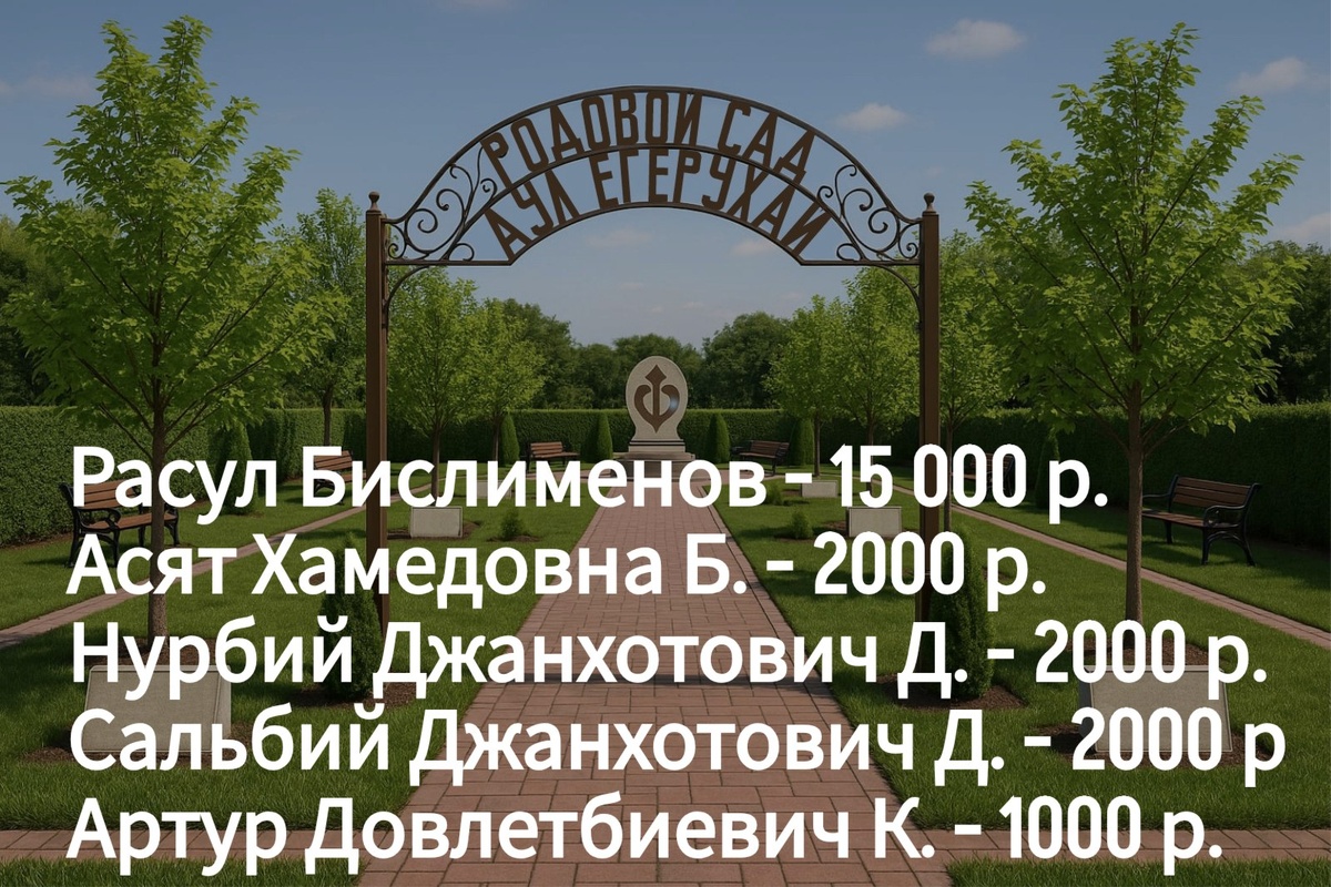 Поступления денежных средств от жителей и выходцев аула Егерухай на реализацию проекта Родового сада.