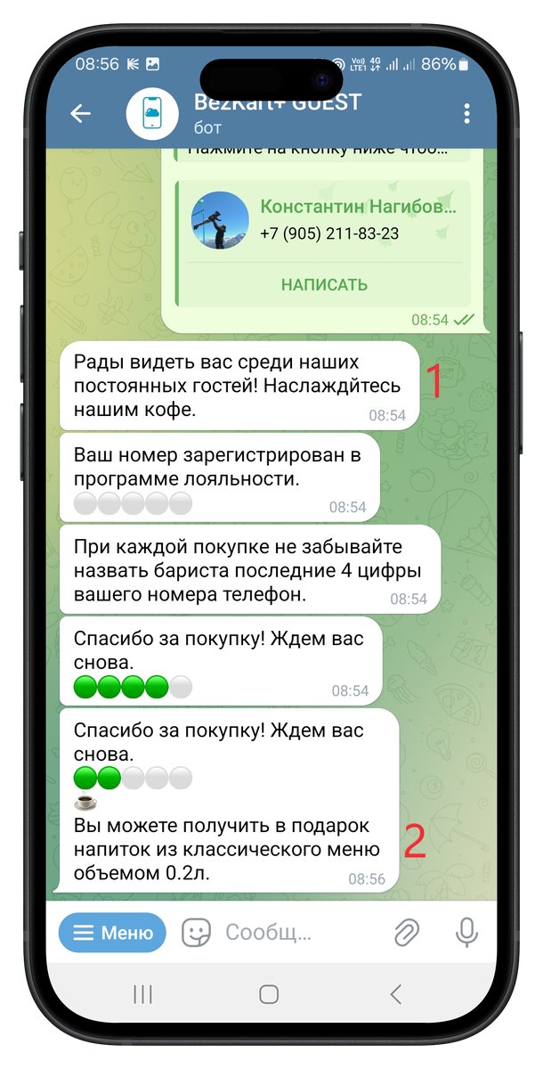 Уважаемые клиенты и партнеры! Сообщаем о внедрении функционального обновления в системе лояльности «БезКарт+», направленного на оптимизацию взаимодействия с клиентами. В рамках анализа обратной связи от пользователей была выявлена систематическая потребность в автоматизации информирования гостей о правилах предоставления бонусных напитков. Ранее данная процедура осуществлялась в ручном режиме силами сотрудников кофейни, что создавало риски неоднозначной интерпретации условий акции. Для минимизации потенциальных конфликтов и стандартизации процессов было принято решение интегрировать в платформу инструмент предустановки параметров бонусной программы. Теперь при подключении новой точки в личном кабинете администратора доступна опция фиксации следующих критериев: Дополнительно реализован модуль автоматизированного приветственного сообщения, транслируемого пользователю после завершения регистрации в программе лояльности. Данный функционал способствует формированию прозрачного диалога с ауд