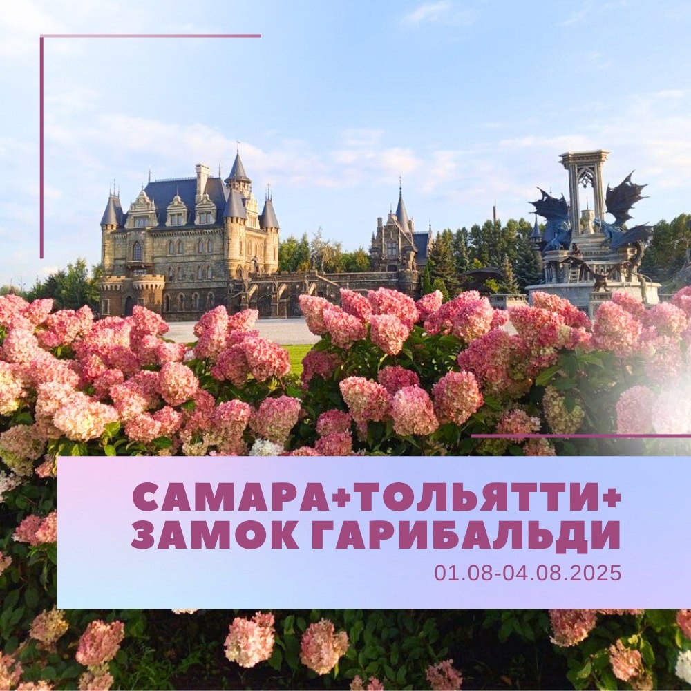 ХИТ❗ Самара + Тольятти + Замок Гарибальди 🚌01.08 -04.08.2025 ✅1 день: Отправление 21:30 Н.Новгород, пл. Ленина Ориентировочное время в пути 11 часов ✅2 день: Обзорная экскурсия по городу Самаре. Обед в кафе города. Экскурсия в музее «Бункер Сталина». Прогулка на теплоходе. Отправление в гостиницу. Размещение в гостинице «Россия». Свободное время. ✅3 день: Завтрак в гостинице. Освобождение номеров. Сбор группы. Отправление в город Тольятти. Добро пожаловать в Тольятти! Обзорная экскурсия. Обед в кафе города. Музей АО «АвтоВАЗ». Экскурсия по Парковому комплексу истории техники имени К.Г. Сахарова. Гордость музея подводная лодка Б-307 - советская дизельная подводная лодка проекта 641Б «Сом». Заложена 7 марта 1980 года на судостроительном заводе «Красное Сормово». Услышите историю, как эта подводная лодка оказалась в г.Тольятти. Экскурсия по территории Туристического комплекса «Замка Гарибальди». Вауууу эффект Вам точно обеспечен!!! Без красивых фотографий Вы точно не останетесь!!! С