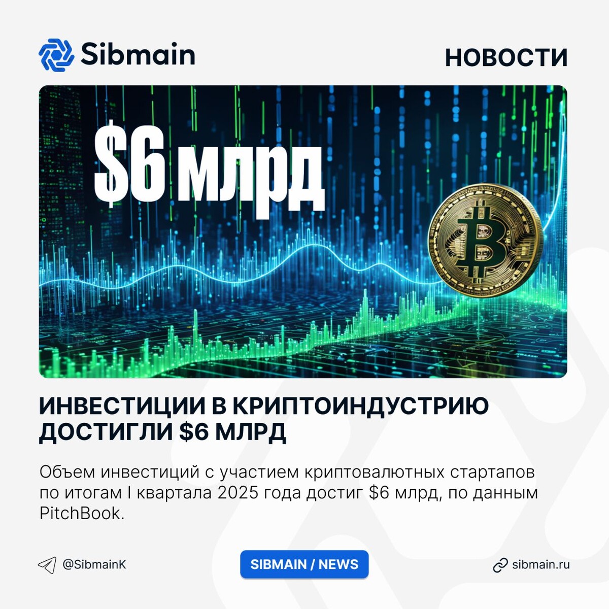 Объем инвестиций с участием криптовалютных стартапов по итогам I квартала 2025 года достиг $6 млрд, по данным PitchBook.