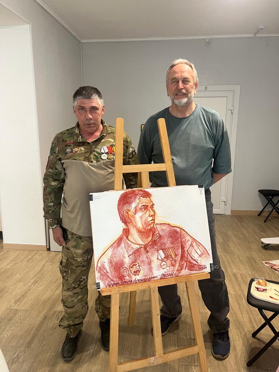 В КГБУСО «Центр социальной реабилитации инвалидов и ветеранов боевых действий», получатели социальных услуг вновь встретились с художником Сергеем Боженко, который создает серию портретов участников специальной военной операции. Портреты, созданные Сергеем Боженко, имеют большое значение для участников СВО и ветеранов боевых действий. Они не только подчеркивают индивидуальность каждого героя, но и служат напоминанием о том, что их вклад в защиту Родины не забыт. Это помогает участникам СВО чувствовать себя частью большой истории, видеть признание и уважение со стороны общества, что особенно важно в процессе реабилитации и возвращения к мирной жизни.