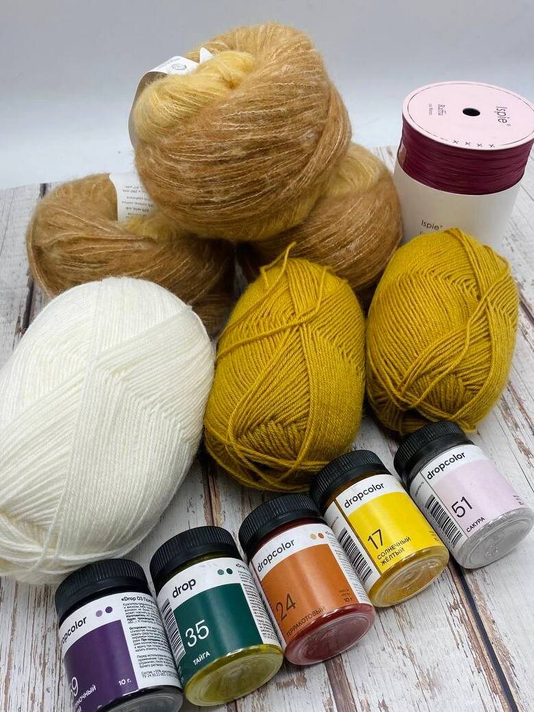 Собираем ваш вязальный чемоданчик в Вязальный лагерь🧳 ☁️Набор «Куркума» Цена без скидки: 8090₽ Цена со скидкой: 6870₽ В наборе медово-горчичные тона: моточки на джемпер «Летучая мышь», два моточка для носков резинкой, рафия для панамы и красители с моточком пряжи для окрашивания❤️ Бронь: @initki_shop_bot