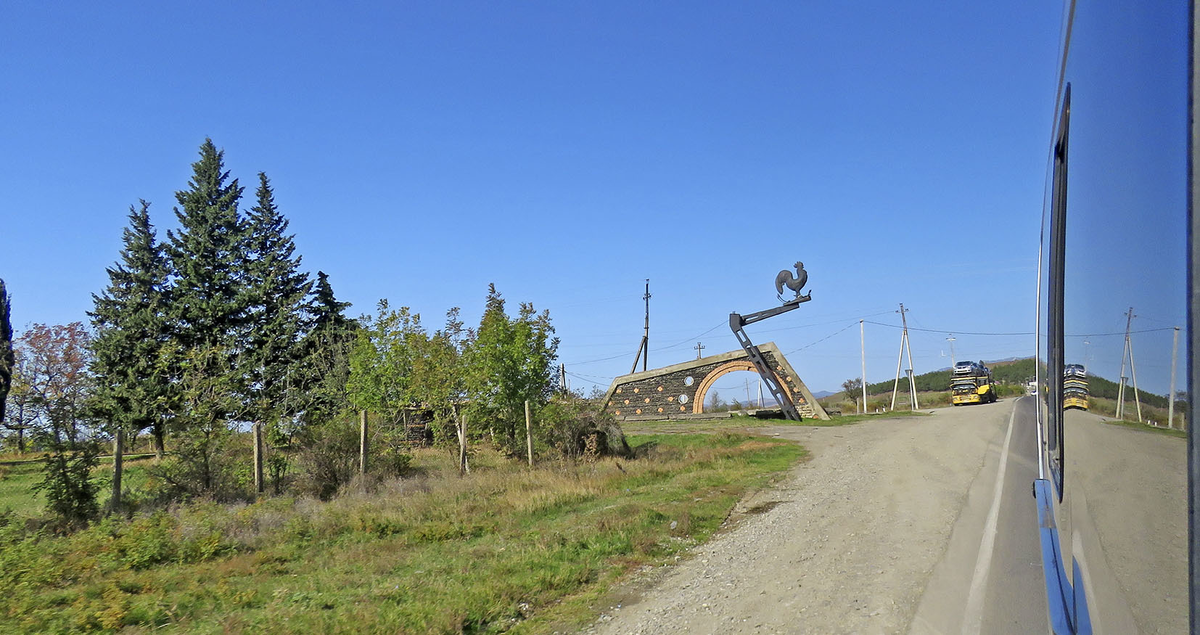 Кахетия, один из мхаре (регионов) Грузии, начинается буквально от околиц Сартичалы. Стела, впрочем, не её, а какого-нибудь совхоза: Первый город на пути, в 45 километрах от Тбилиси - Сагареджо (11 тыс. жит.), выросший из известного с 11 века селения Твали. Оно было центром угодий Гареджийского монастыря, а потому с течением веков и название его стало чем-то вроде Гаредживщина. В 1962 из села сделали город, удивительный хотя бы тем, что у него есть явный даже не Отец, а Мать: местная уроженка Медея Мезвришвили в разных должностях руководила Сагареджойским районом в 1961-91 годах, а в 1990-х возглавляла всю Кахетию. Именно она стряхнула пыль с руин Давид-Гареджи, построила в 1987 году асфальтовую дорогу туда и село Удабно для сванов, спустившихся с гор. Заброшенный ресторан у начала этой дороги, единственное примечательное здание Сагареджо - видимо, тоже наследие Медеи Арчиловны. Больше впечатляет Гомборский хребет с голыми сыпучими вершинами до 1700 метров, нависающий над Сагареджо. А