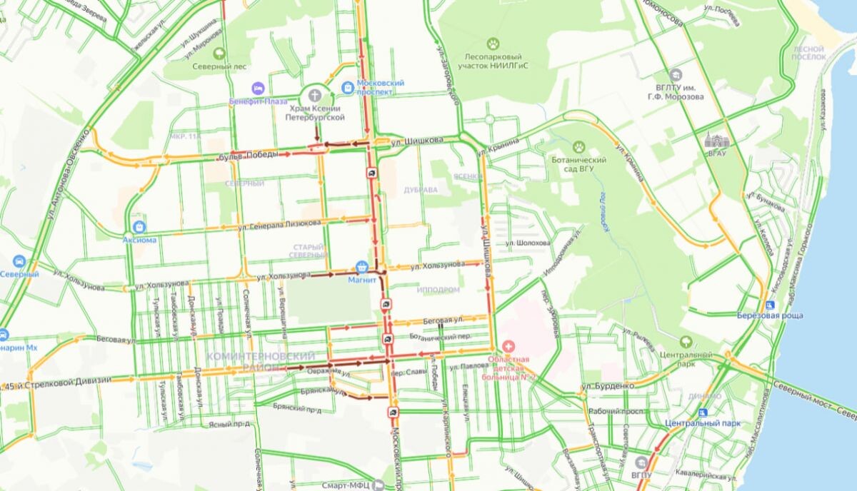 Воронежцы проводят утро в жуткой пробке на Московском проспекте