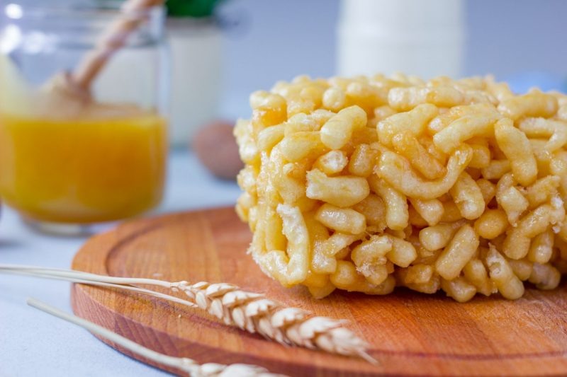 Рецепт традиционного татарского лакомства ЧАК-ЧАК Ингредиенты: - Яйца — 3 шт. - Мука пшеничная — около 2 стаканов (может потребоваться больше или меньше) - Сахарный песок — 2 ст.л. - Разрыхлитель теста — щепотка - Мед — 200 г - Масло растительное для жарки Приготовление: Шаг 1: Замешивание теста 1. Взбейте яйца с сахаром добела венчиком или миксером. 2. Постепенно вводите муку, смешав её предварительно с разрыхлителем, замешивая мягкое тесто. Оно должно быть эластичным и легко раскатываться. Шаг 2: Формирование палочек 1. Раскатайте тесто тонким слоем (около 3 мм). 2. Нарежьте тонкими полосками шириной примерно 7–8 мм. Шаг 3: Жарение 1. Нагрейте масло в глубокой сковороде или кастрюле. 2. Обжаривайте нарезанные полоски небольшими порциями до золотистого цвета. 3. Вынимайте шумовкой и дайте маслу стечь. Шаг 4: Соединение медового сиропа 1. Растопите мед на слабом огне. 2. Добавьте обжаренные кусочки теста и аккуратно перемешайте ложкой, чтобы равномерно покрыть медом каждый кусочек. Шаг