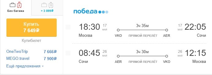 ✈️Москва - Сочи, туда и обратно за 7650 рублей