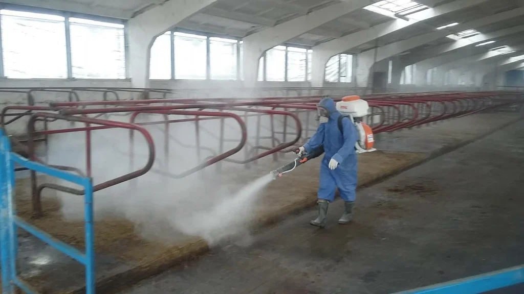 Дезинфекция коровника После дезинфекции помещение закрывают на 3–12 часов в зависимости от используемого дезинфектанта. Затем удаляют остатки средства чистой водой и хорошо проветривают до полного исчезновения запаха дезинфектантов. При стойкости оборудования к воздействию химических веществ время закрытия здания увеличивают до 6–12 часов. Выбор дезинфицирующего средства и его концентрации зависит от цели обработки, назначения объекта и от восприимчивости возбудителя к тому или иному средству. #Дезинфекция #Фермы #Коровники
