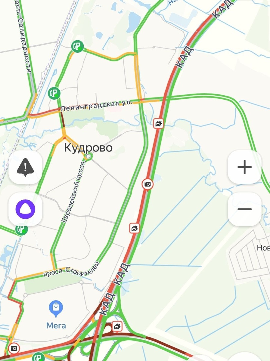 На КАД в районе Кудрово выросла пробка в 11 километров Кольцевая встала из-за нескольких аварий. Ранее сообщалось, что по трассе в сторону Софийской перевернулся грузовик. После этого случилось еще пару ДТП. Движение сейчас также затруднено на части Мурманского шоссе и Народной улице. В целом же пробки на дорогах Петербурга сейчас оцениваются в 7 «желтых» баллов. ДТП и ЧП Кудрово