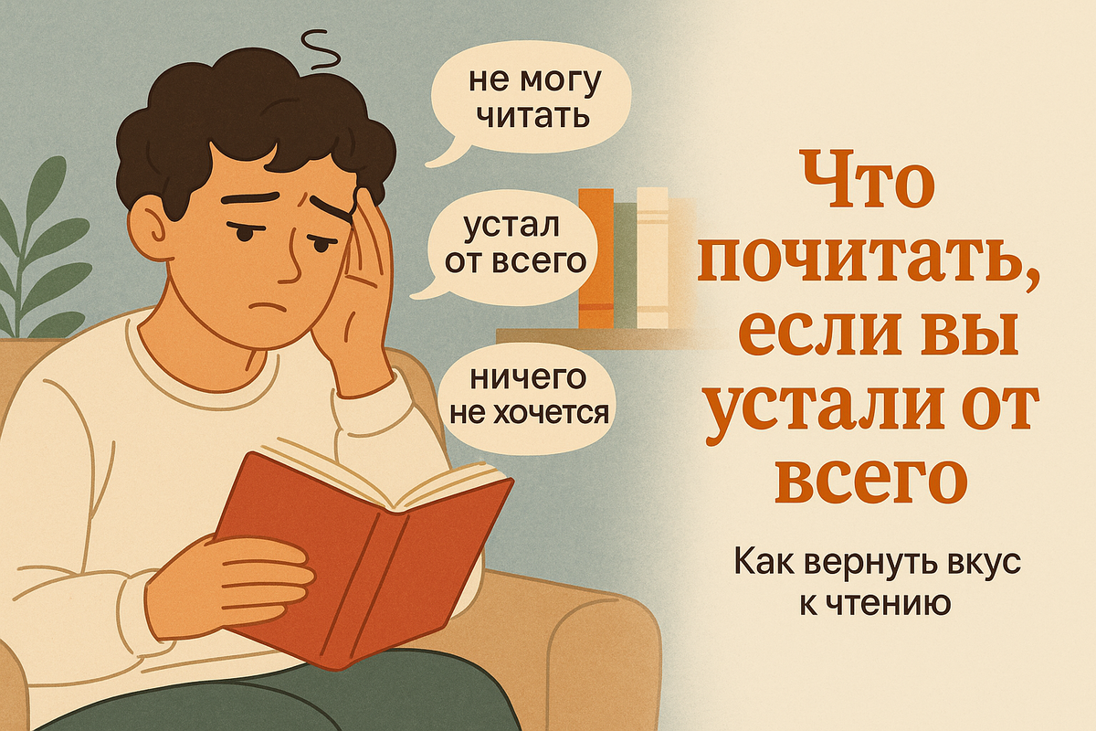 Усталость от чтения — нормальна. Особенно, когда вокруг много стресса, информационного шума и просто жизни. Книги требуют внимания, а если его внутри не осталось — не помогут ни шедевры, ни марафоны по 30 страниц в день.