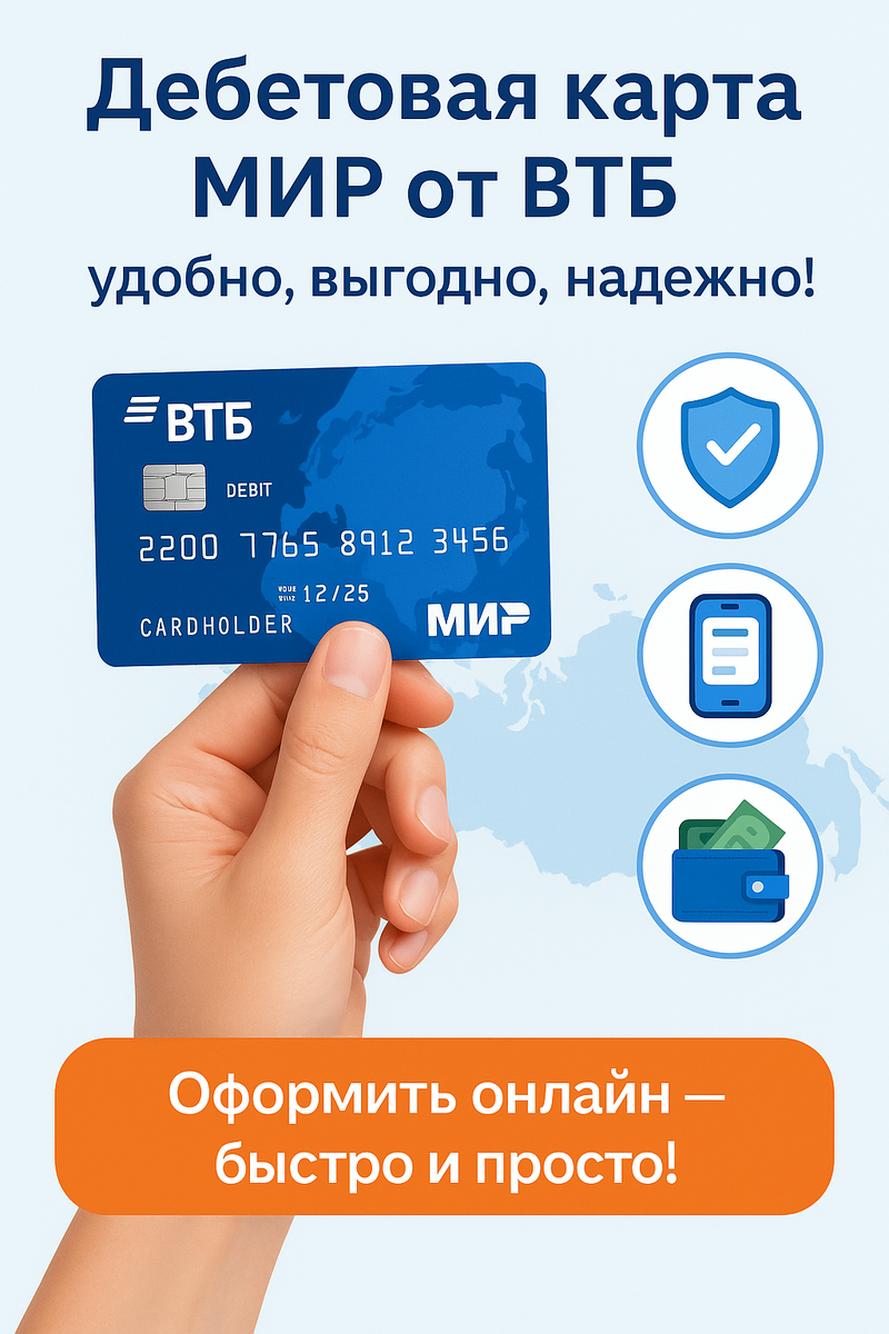 Если вы еще не знакомы с дебетовой картой МИР от банка ВТБ, самое время познакомиться поближе! Это современное финансовое решение, которое сочетает удобство, безопасность и реальные выгоды для каждого. В этой статье я расскажу, почему карта МИР от ВТБ заслуживает вашего внимания, и как легко её оформить — прямо сейчас. Карта МИР — национальная российская платежная система, которая была создана для обеспечения финансовой безопасности и независимости страны. Она работает на всей территории России и становится всё популярнее среди людей разных возрастов и профессий. С картой МИР от ВТБ вы получаете: ВТБ — один из крупнейших и самых надежных банков страны. Карта МИР, выпущенная ВТБ, соответствует всем современным стандартам безопасности. Ваши деньги всегда под надежной защитой — от мошенников и технических сбоев. Карту принимают везде — от крупных супермаркетов до небольших кафе. Оплачивать покупки, коммунальные услуги, интернет и мобильную связь стало проще простого. С приложением ВТБ у