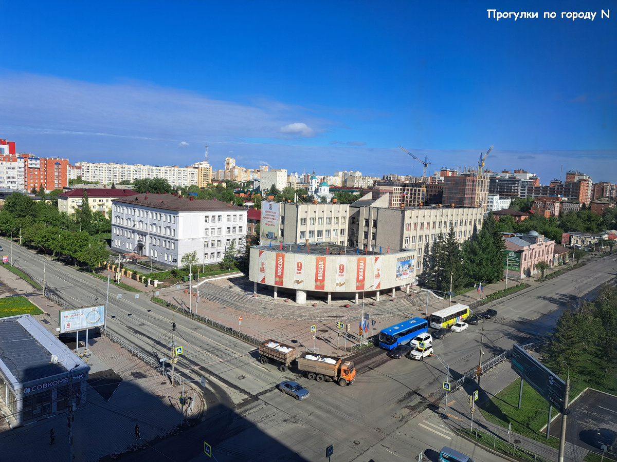 Через дорогу на фоне восьмиэтажки - интересное здание - дом, где жил писатель А. Сорокин и бывали многие сибирские писатели.