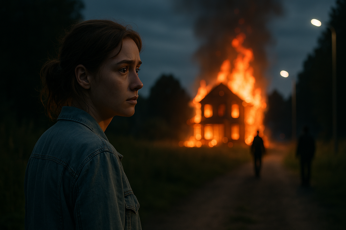 Она обошла дом, заливая бензин на пороге, у фундамента, в подвале. Когда чиркнула спичкой, раздался вой — не человеческий. Дом закричал, как живой. Огонь занялся моментально, и пламя словно тянуло вверх не дым — а силуэт человека. Он смотрел на Аню изнутри, неумолимо, с упрёком. Но она не отступила.