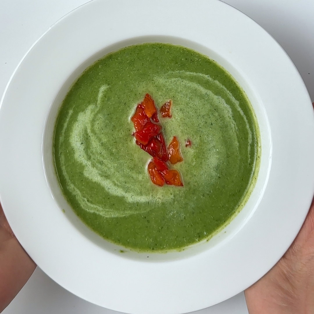 У меня был длинный отпуск практически месяц, и надо отметить, что в еде я себя не ограничивала! Это идеальный суп для меня после отпуска! Он лёгкий, не перегружает организм и готовится очень быстро с минимумом усилий. Нарезаем картофель и кабачок произвольными кусочками. Отправляем в кастрюлю овощи добавляем воду и варим около 15 минут до готовности под крышкой. Пока варятся овощи я готовлю гренки. Хлеб нарезаю кубиками и обжариваю на сухой сковороде чтобы он стал хрустящим. К готовым овощам добавляем замороженный шпинат и варим несколько минут помешивая чтобы шпинат полностью разморозился. Убираем кастрюлю с плиты и пробиваем все погружным блендером, чтобы суп получился однородным. Добавляем подогретые сливки, соль, перец, специи, сыр, ещё раз пробиваем блендером. Рецепт на 2 порции: • Натертый пармезан 10-20 г. Вместо пармезана я могу добавить пищевые неактивные дрожжи( не хлебопекарные!) Приятного Аппетита!