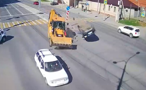 В Центральном районе Волгограда сегодня утром, 15 мая, столкнулись четыре автомобиля, в числе которых трактор. Одна из иномарок от удара перевернулась в воздухе и упала на бок. Как рассказали РИАЦ в ГУ МВД России по области, массовое ДТП случилось около 08.20 на пересечении улиц Ткачёва и Рокоссовского. Участниками аварии, помимо трактора Caterpillar, стали легковые машины Nissan Qashqai, Volkswagen Tiguan и Skoda Rapid. Согласно записи камеры видеонаблюдения, на Второй продольной магистрали перед трактором с ковшом выскочила отечественная легковушка. Она объезжала колонну машин, поворачивающую на улицу Ткачёва. Спецтранспорт дёрнулся в сторону и боком ударил Nissan Qashqai. Иномарка двигалась в попутном направлении по соседней полосе. Легковушка подлетела и перевернулась в воздухе. Она упала на бок и днищем протаранила остановившийся Volkswagen Tiguan. А развернувшийся трактор ковшом разбил лобовое стекло у Skoda Rapid. В результате ДТП за медицинской помощью обратилась 45-летняя женщ