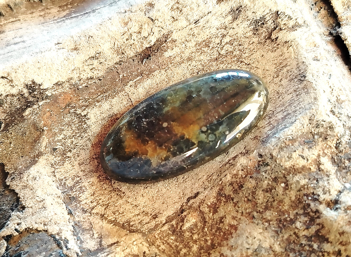 Не прошло и года, я его сделала! 😁 Не буду тянуть, сразу покажу, что у меня получилось: Тем, кто не читал предыдущую публикацию об этом камне, покажу, как он выглядел до обработки: Если честно, я ожидала, что кабошон из него будет более прозрачным и эти колечки будут красиво плавать в глубине камня. Но нет. Он по прежнему прозрачен только на просвет. Хотя все равно получилось симпатично. И главное, чего уже давно у меня не было, вышла идеальная полировка. Зеркало без единой царапинки, даже под лупой! Пока снимала, намучилась. В камеру попадало все, что есть в комнате. Рассада, мебель, я с телефоном - все очень четко отражалось в камне 😂 Сам камень на фото видно не было... Вчера, окончательно поняв, что либо сейчас, либо никогда, я все-таки начала обработку в середине дня. Выглядело это примерно так: В конечном итоге на третьем этапе обработки у меня было вот это кривое безобразие 😣: Тут я окончательно поняла, что с работой этот процесс несовместим 😐 После рабочего дня, махнув рукой