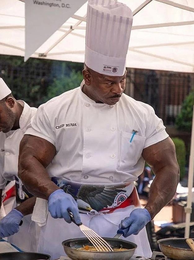 Андре Раш — человек, который сумел завоевать популярность не только благодаря своим кулинарным навыкам, но и впечатляющим физическим данным. Бывший шеф-повар Белого дома готовил для четырёх президентов США — от Клинтона до Трампа. Его история — это пример того, как можно достичь успеха в разных сферах жизни. От армии до Белого дома Прежде чем стать известным шеф-поваром, Андре служил в армии и дослужился до звания мастер-сержанта. Это говорит о его дисциплинированности и умении добиваться целей. После работы в Белом доме Андре стал медийной звездой. Медийная звезда После завершения работы в Бело доме Андре запустил своё шоу с Гордоном Рамзи, участвовал в корейской кулинарной битве на Netflix. Его путь доказывает, что талант и упорство могут привести к успеху в самых разных сферах. Не только бицепсы Андре Раш — не просто человек с впечатляющими мышцами. Его история напоминает нам о том, что за внешними достижениями часто стоят годы труда и самосовершенствования. Каждый день Андре делает