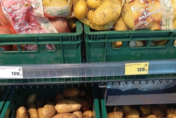 Новые данные Волгоградстата о ценах на картофель удивили покупателей. Читатели ИА «Высота 102» поделились своими наблюдениями за динамикой цен на этот популярный продукт питания и признались, что не наблюдали в магазинах картошку за 92 рубля. Именно столько составляет средняя цена на продукт, по данным Волгоградстата. – Цена на картофель 105 рублей, – утверждает читатель Роман. – 119 рублей картофель, – делится Елена. – С 92 рублей быстро взлетела до 120 рублей. Вчера в «Магните» только брала за 105 с копейками. На часах было около 22:00. Ради интереса надо посмотреть сегодняшнюю цену, – сообщает Лариса. Но и такие цифры – еще не предел. Жители Фролово, например, запечатлели картофель по еще более шокирующим ценам – за 129 и 139 рублей за кг. К слову, недавно в Минсельхозе РФ «успокоили» россиян новостью о том, что цены на картофель будут снижаться после первого урожая – то есть в конце июня. Осталось потерпеть. Фото Подслушано Фролово VK.com