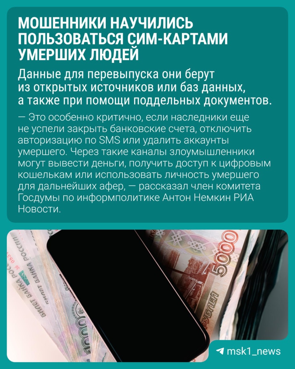 Они научились перевыпускать сим-карты умерших людей. Это дает им доступ ко всему, что было связано с этим номером — от банковских сервисов до мессенджеров.
