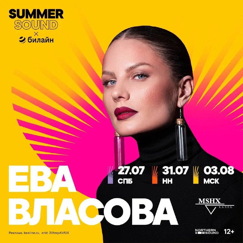 Привет! Классные новости! По традиции анонсирую сначала в ТГ 💋 Этим летом серия открытых концертов в рамках Summer Sound x Билайн! Я очень жду встречи с вами 🫂 27 июля / Санкт-Петербург 31 июля / Нижний Новгород 3 августа / МОСКВА Очень люблю вайб наших летних встреч под открытым небом! Ссылки на билеты: Нижний: https://summersound.ru/2025/nn/eva-vlasova Москва: https://summersound.ru/2025/msk/eva-vlasova Питер: https://summersound.ru/2025/spb/eva-vlasova