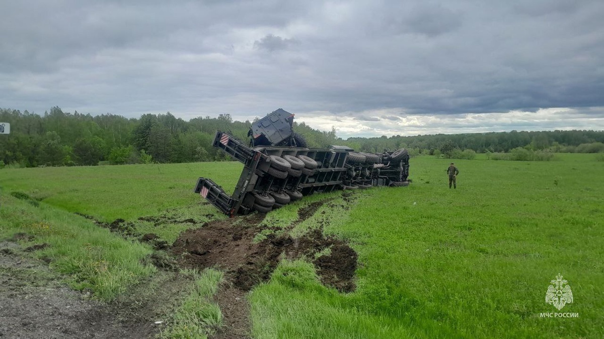 Сотрудники МЧС Башкортостана работают на месте ДТП, которое произошло на 1518 километре трассы М-5 в Иглинском районе Столкнулись грузовой автомобиль КАМаз с тралом и легковушка КИА. Грузовой автомобиль в результате ДТП съехал в кювет и опрокинулся на бок. Для его подъема планируется привлечение автокрана. В ДТП пострадали два человека. Сотрудники МЧС России на месте оказали первую помощь пострадавшим и отключили аккумуляторные батареи на автомобилях. Обстоятельства происшествия устанавливаются. На месте работают сотрудники Госавтоинспекции.