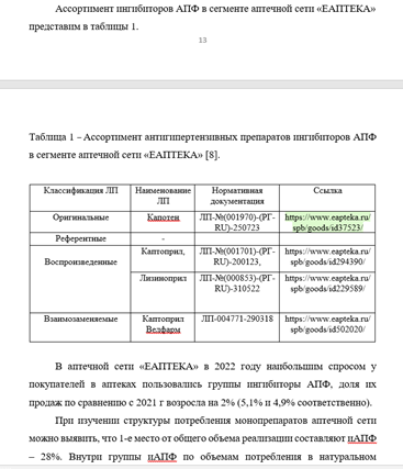 2.2 Ассортимент антигипертензивныхпрепаратов ингибиторов АПФ в сегменте аптечной сети «ЕАПТЕКА» ………………………………………….14