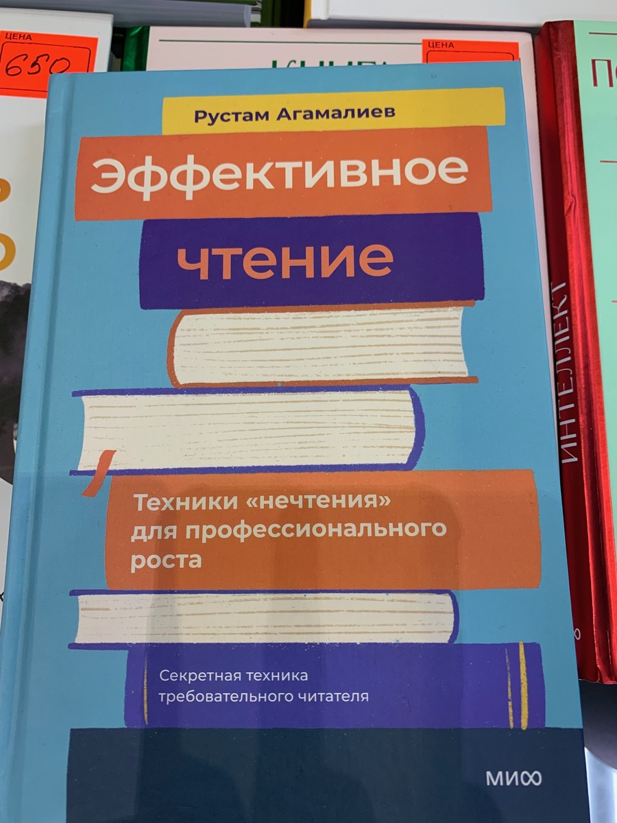 Углядела книгу "Эффективное чтение" Р. Агамалиева на стенде издательства "МИФ" на ярмарке non/fictio№. Тема для меня очень актуальна: столько всего хочется прочесть, но физически не хватает времени, а из прочитанного мало что оседает в голове, - что более чем объяснимо в том нескончаемом потоке информации, который обрушивается на читателя в наши дни. Решила не покупать, а неспешно ознакомиться с ней в моем любимом МДК на Новом Арбате - там это очень удобно делать: на 2 этаже много посадочных мест - листай не хочу! И очень правильно поступила! Потому что издательство "МИФ" разочаровало качеством печати книги, которая в апреле 2025 года в указанном магазине стоила более 1000 р (!), в "Читай-городе" на момент публикации поста (май 2025 г.) - около 800 р. с учетом скидки, на маркетплейсах ее можно найти за 600+ рублей, что тоже не копейки. Бумага дешевая, а-ля газетная. Читать книгу это не мешает, но ценник в 1000 р. в рознице для полиграфии такого качества - перебор раза в 2. Мягкая обл