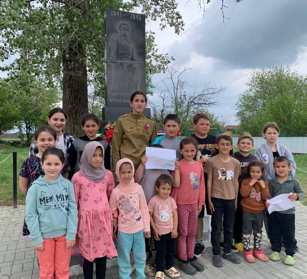 Пока она кипела в котле, Анастасия проводила конкурсы среди местной детворы. Сначала ребята поучаствовали в спортивной эстафете, затем в конкурсе рисунков, посвященных Дню Победы. Взрослые, оценив работы юных художников, вручили им сладости и шоколадки.