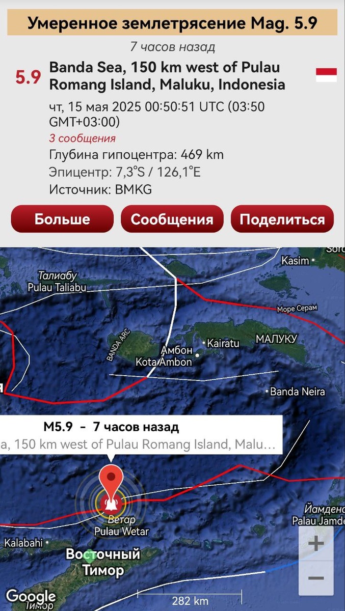От землетрясения М5.9 в море Банда ОСТИ наблюдался за несколько часов до события.