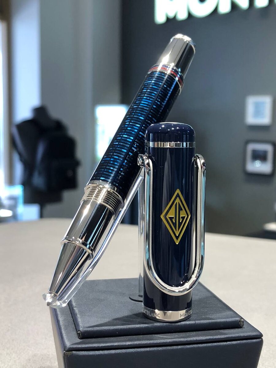 #Ручки MONTBLANC GREAT CHARACTERS — HOMAGE TO GREAT GATSBY Стоимость: 159000₽. Дизайн ручки был вдохновлен ослепительным Нью-Йорком эпохи Гэтсби с его сверкающими небоскребами в стиле ар-деко, возвышающимися на фоне синего вечернего неба. С помощью специальной техники на корпусе воссозданы ярко освещенные фасады высотных зданий ночного города. Эмблема Montblanc в верхней части колпачка светится в темноте, поглощая и накапливая свет в течение дня, её свечение напоминает зелёный огонек на причале у дома Дейзи в романе. Клип с платиновым покрытием, выполненный в форме зажима для банкнот, символизирует успешность и богатство. Под зажимом расположены инициалы Джея Гэтсби в виде ромбовидной монограммы с золотым покрытием. Верхняя часть корпуса, выполнена в форме крышки от фляги и символизирует эпоху «сухого закона» и успех бутлегеров в этот период. Пишущий инструмент украшен кольцами цветов американского флага, отсылая к американской мечте. 📱: +7 (985) 998-48-10