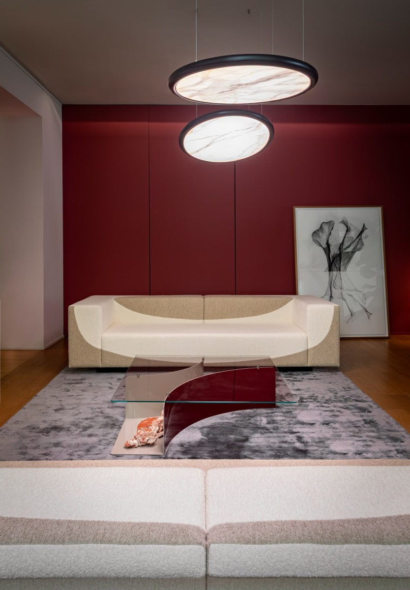 Экспозиция Luxence на Salone del Mobile. От сдержанных бежевых и серых до выразительного красного Lamante — фирменного оттенка, символа страсти и силы Luxence. Эмоция заложена в деталях: лакированные поверхности, стекло, металл — всё говорит языком высокого дизайна. Среди новинок — большой лакированный стол Giano.
