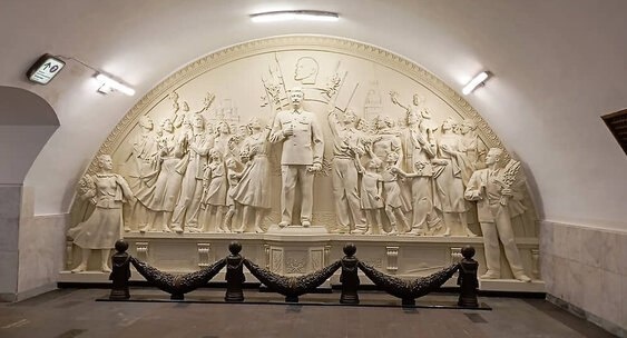 Рельеф с секретарем ЦК КПСС и председателем Совета министров СССР Иосифом Сталиным появился в переходе станции метро «Таганская» к 90-летию подземки.