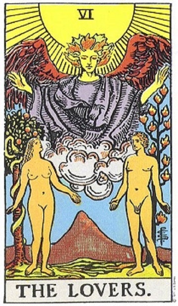 - борьба или испытание, которое закончится вашей победой. Изображенные на карте Таро Влюбленные – это не просто мужчина и женщина, это первые люди на Земле: Адам и Ева.