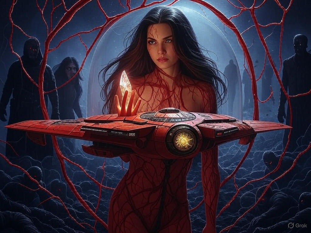 Тёмный зов Земля жила в напряжённом затишье. Тёмные линии в небе, оставшиеся после битвы с Ари, начали медленно расширяться, источая кроваво-красное сияние, которое окрашивало ночи в зловещий оттенок. Сора, Кай и Зейн, ставшие лидерами "Якорей", работали без отдыха, пытаясь понять природу новой угрозы. Медальон Лиры, теперь пустой, внезапно ожил в 03:58 AM CDT 15 мая 2025 года, издав низкий гул и высветив незнакомые символы, похожие на звёздные карты. Зейн расшифровал их: это были координаты, ведущие за пределы известного космоса, к источнику, который он назвал "Кровью звёзд" — древней сущности, чьё существование предшествовало Паутине. Лира, всё ещё связанная с Паутиной, передала слабое сообщение: — Она зовёт меня. Если я не остановлю её, Паутина разорвётся, и всё погибнет. Сора поняла, что это не просто угроза — это война, которую они не могут выиграть, оставаясь на Земле. "Эхо" был подготовлен к самому опасному путешествию, а команда пополнилась неожиданным союзником: Эйра,
